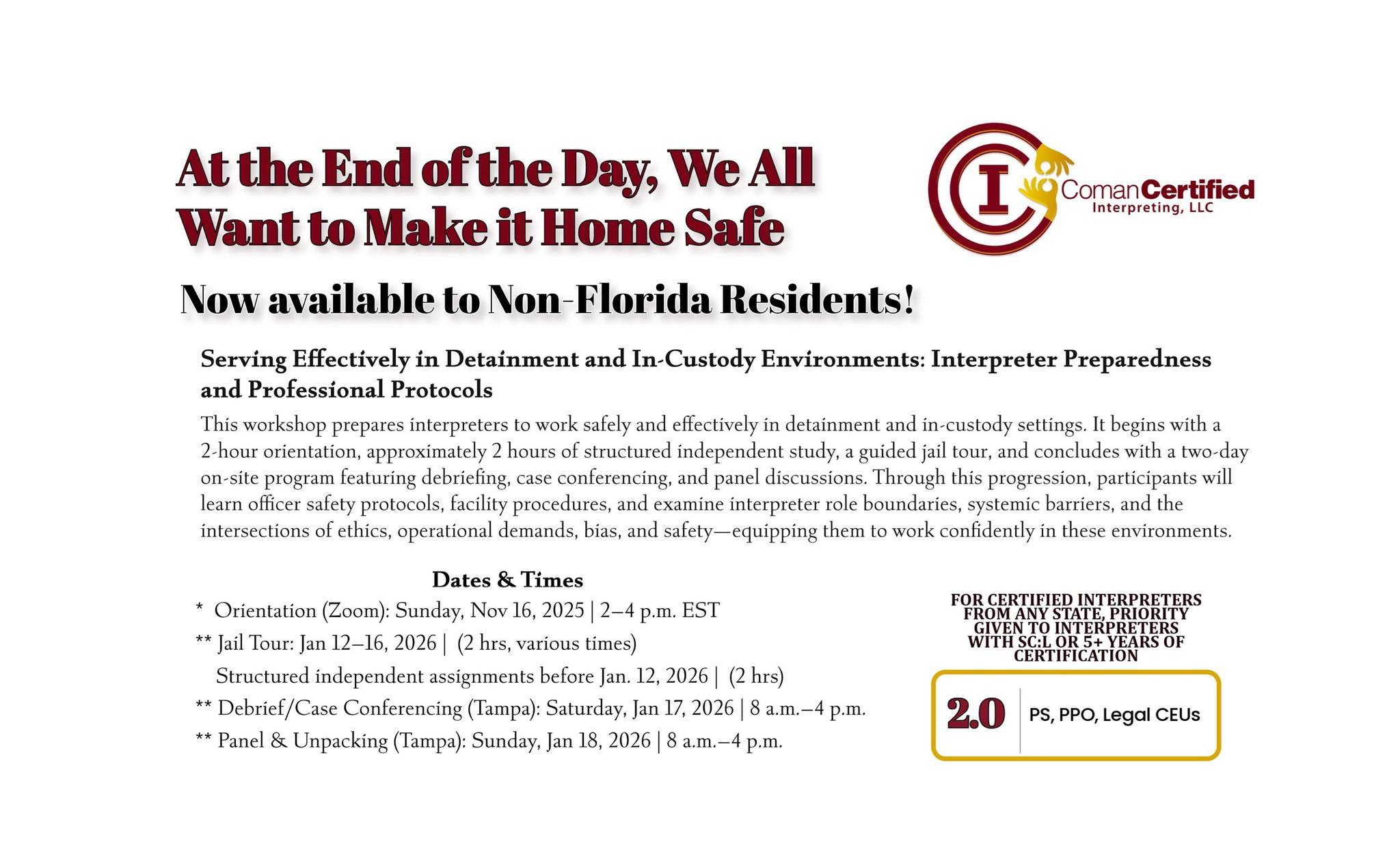 No refunds, transfers only permitted to qualified interpreters on or before 11/14/2025
